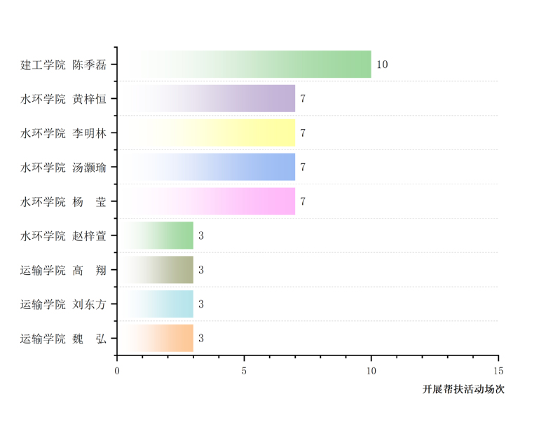 每一串数字背后都是优秀朋辈的匠心耕耘、助人为乐与热心奉献,其中建工学院陈季磊同学,作为主讲人开展朋辈学业帮扶10场,再次喜提“主讲之冠”。水环学院黄梓恒、李明林、汤灏瑜、杨莹,4名同学再次入围,以微光相伴,照亮前行的路。