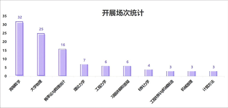 物理类课程开展37场占比23.3%