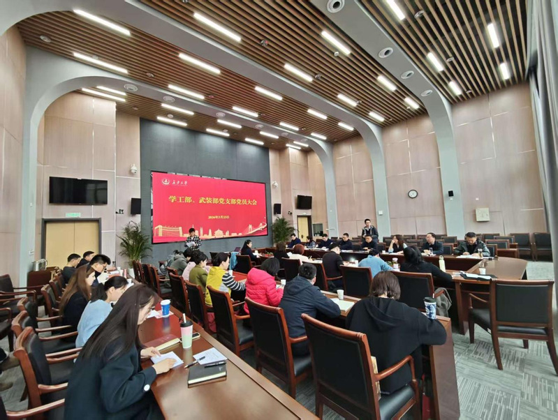 2026年3月23日,学工部、武装部党支部在北校区师生服务大厅二层第一报告厅召开党员大会,全体党员参加会议,会议由党支部书记姬国斌主持。