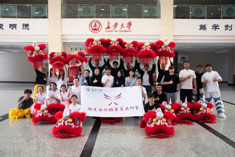 4月9日,“承狮载韵·美育润心”中-乌学生非遗舞狮文化体验活动在渭水校区大学生活动中心数字文化展厅顺利举行。本次活动由长安大学“向美而行”辅导员工作室承办,“丝路青峰”中亚(乌兹别克斯坦)技术官员专项培训团成员,联盟秘书处中-乌交通学院、汽车学院、外国语学院、体育部(系)师生代表40人参加活动。