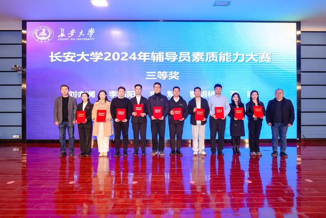 12月19日下午,长安大学2024年辅导员素质能力大赛决赛在北校区北辰会议中心二层报告厅举行。校党委副书记黎开谊出席活动并为获奖者颁奖。活动现场对辅导员素质能力大赛一、二、三等奖获得者、优秀二级心理辅导站、优秀二级心理辅导站站长、优秀学生朋辈互助人员代表进行表彰颁奖。本次大赛由学工部、研工部、工会主办。
