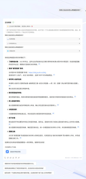 基于学校最新规章制度和本地化数据训练,深度解析转专业、奖助学金、保研考研等政策细节。构建“八大知识库”,涵盖党团,新生指南,学业发展,生涯规划与就业指导,奖助奖惩,心理健康等海量知识,为全校师生提供便捷智能服务,并建立四级权限,严格保护学生的数据隐私。