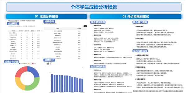 AI辅导员依托本地部署的大模型的强大逻辑推理与数据分析能力,成为学生们“人生导师”,在整合学生学业轨迹、成长行为等多维数据的基础上,实现“一生一策”的个性化学业诊断报告与生涯发展路径,为每一位学生提供定制化成长导航,实现人工智能赋能精准育人。
