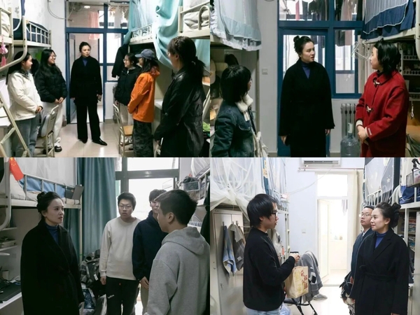 走访中,马熠航与各年级同学深入交流,既关心生活作息与安全,也了解学习情况与发展需求。针对低年级同学,重点指导专业学习与校园适应;对高年级同学,则聚焦实习、就业等实际问题。同时查看宿舍环境与用电安全,提醒同学们共同营造整洁、和谐、向上的生活空间。在大四宿舍,马熠航为考研学子送上“加油包”,详细询问备考进展,倾听冲刺阶段困难,叮嘱大家劳逸结合,以平和心态迎接考试。
