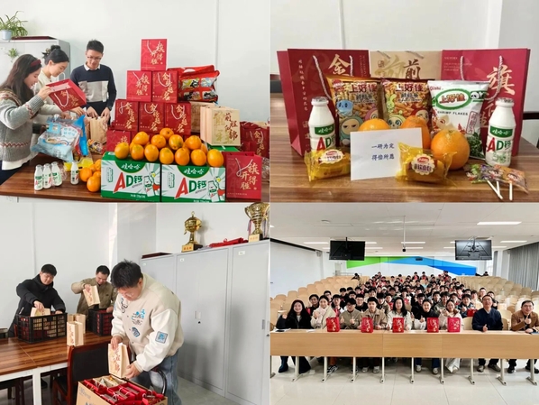 毕业年级辅导员与思政班主任利用周见面时间,为全体考研学生送上暖心加油礼包。礼包由学生党员志愿者精心准备,内含“心想事成”橙子与各类零食,外印“旗开得胜”“金榜题名”“前程似锦”等祝福语,一份份礼包承载着师生暖心祝福。