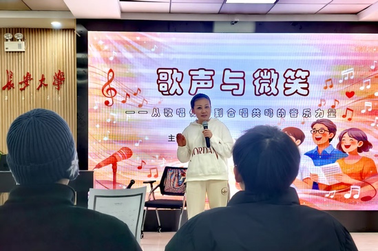 12月24日晚,社区讲堂第六期活动顺利举办。本次活动由能源与电气工程学院定制,特邀长安大学艺术教育中心副教授、声乐表演博士马赛担任主讲人,以《歌声与微笑——从歌唱体验到合唱共鸣的音乐力量》为主题,带来了一场沉浸式的美育盛宴。